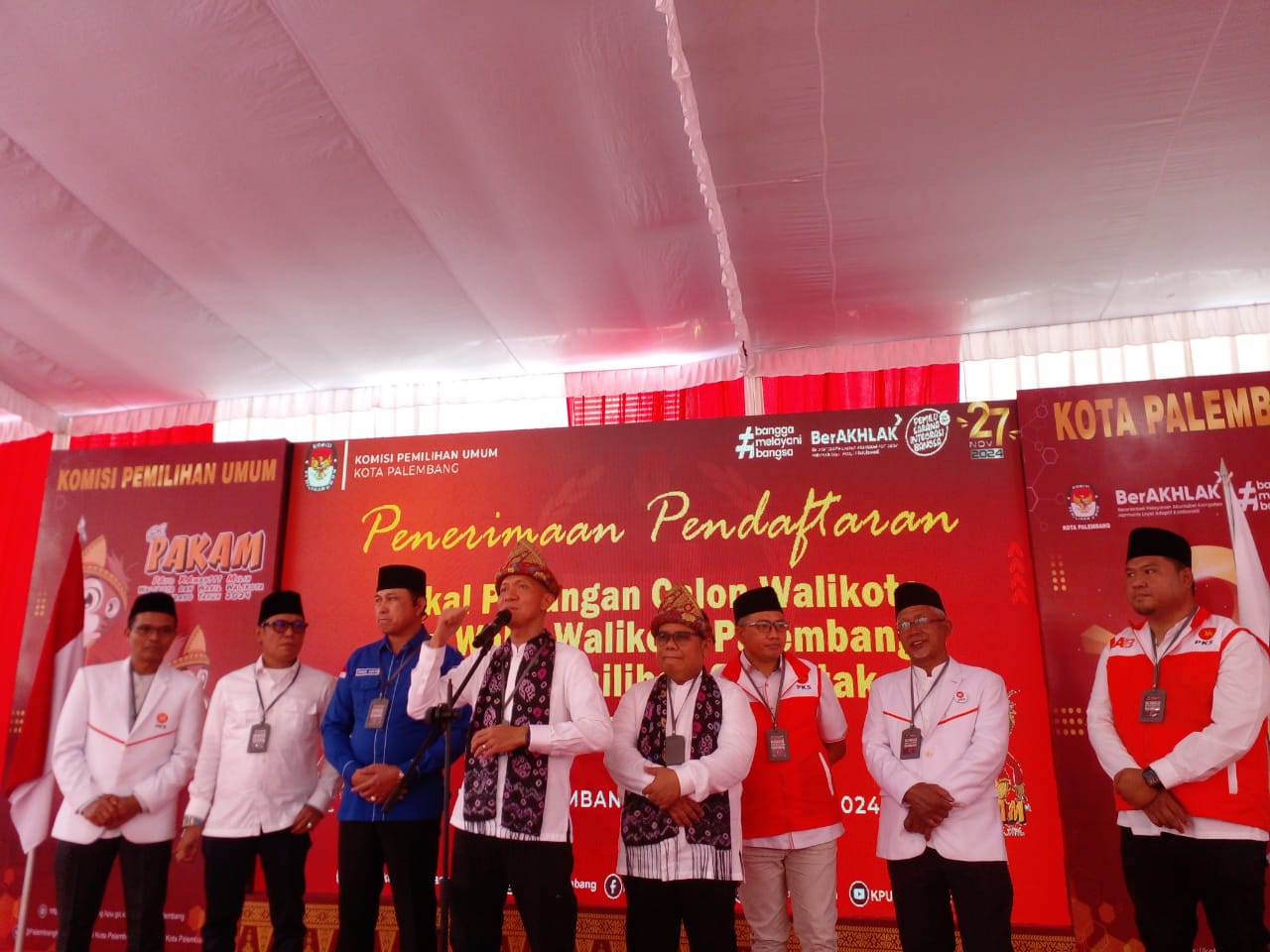 “Ketika sampai di KPU Palembang, Yudha-Bahar pun disambut ratusan relawan yang telah menunggu sejak pukul 07.00 WIB pagi Mereka kemudian memasuki halaman KPU Palembang dengan disambut oleh anggota keluarganya.
