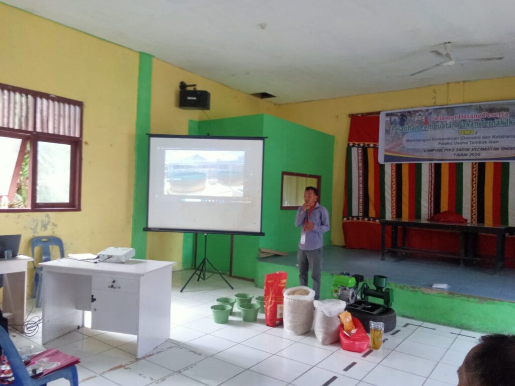 Di sesi pelatihan, Khairul Hidayat sebagai nara sumber utama banyak memberikan kiat sukses dalam pengolahan pakan ikan buatan, bahkan kata dia dari sebuah artikel yang di tayangkan salah satu media tentang adanya pakan sintetis yang tentunya dapat menghambat pertumbuhan ikan, sebut nya.