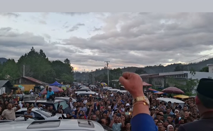 A1news.co.id|Takengon– Ribuan masa banjiri halaman KIP Aceh Tengah, pasangan Alhudri dan Alaidin Abu Abas nampak memunculkan aura kemenangan, antusias para simpatisan dan triakan gemuruh pada saat pendaftaran dini hari tgl 29 Agustus 2024.