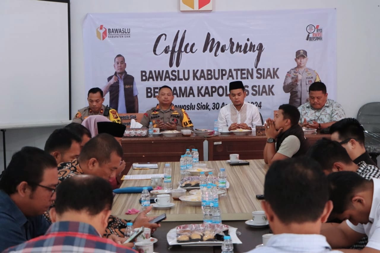 A1news.co.id|Siak– Kapolres Siak Polda Riau AKBP Asep Sujarwadi, SIK, MSI ngopi bareng dengan Badan pengawas pemilu ( Bawaslu ) Kabupaten Siak, Jumat (30/8/2024).