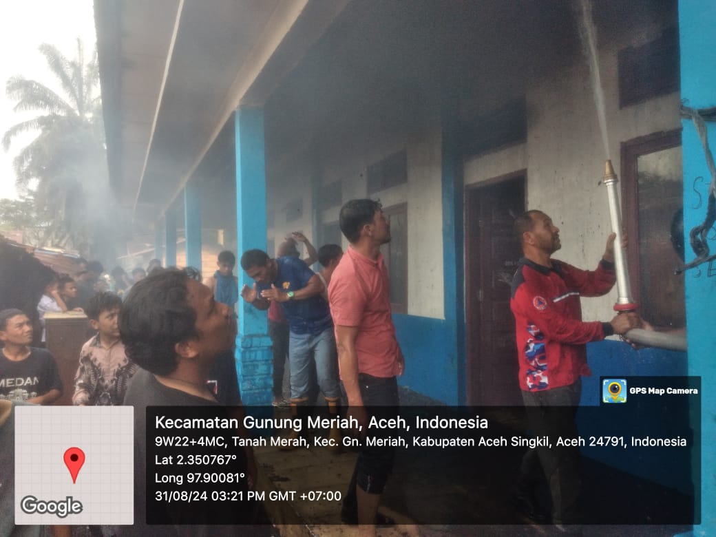 A1news.co.id|Aceh Singkil– Kebakaran melanda Pondok Pesantren Darul Mutta’allimin di Desa Tanah Merah , Kecamatan Gunung Meriah sekira pukul 14.30 WIB ,31/8/2024.