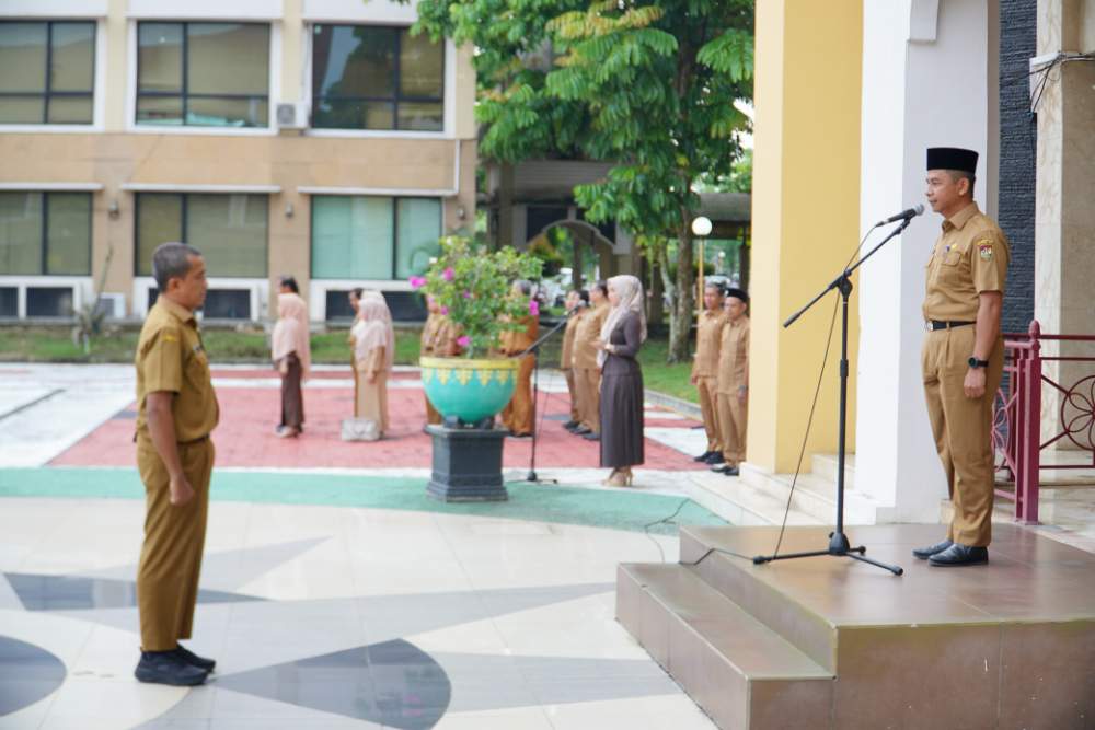 A1news.co.id|Kampar– Dalam Rangka meningkatkan kedisiplinan dan Sikap Aparstur Sipil Negara (ASN) dan Tenaga Harian Lepas (THL), Pj Sekda Kampar Ahmad Yuzar, S.Sos, MT memimpin Apel Gabungan Di Ruang Lingkup Pemkab Kampar, Senin (2/9/2024).