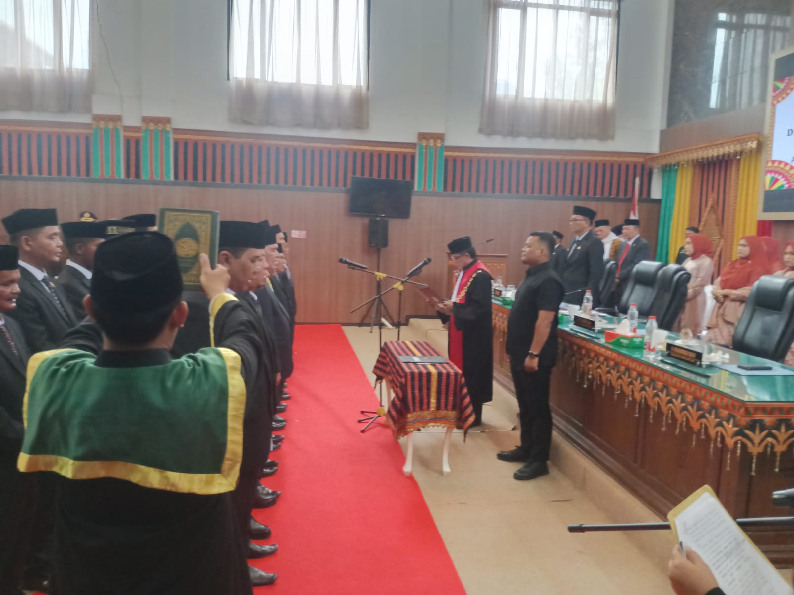 Pemkab Gayo Lues melalui Sekretaris Dewan (Sekwan) DPR-K mengelar acara Rapat Paripurna istimewa untuk pengambilan sumpah/Janji di gedung utama DPR-K Senin 02-09-2024.