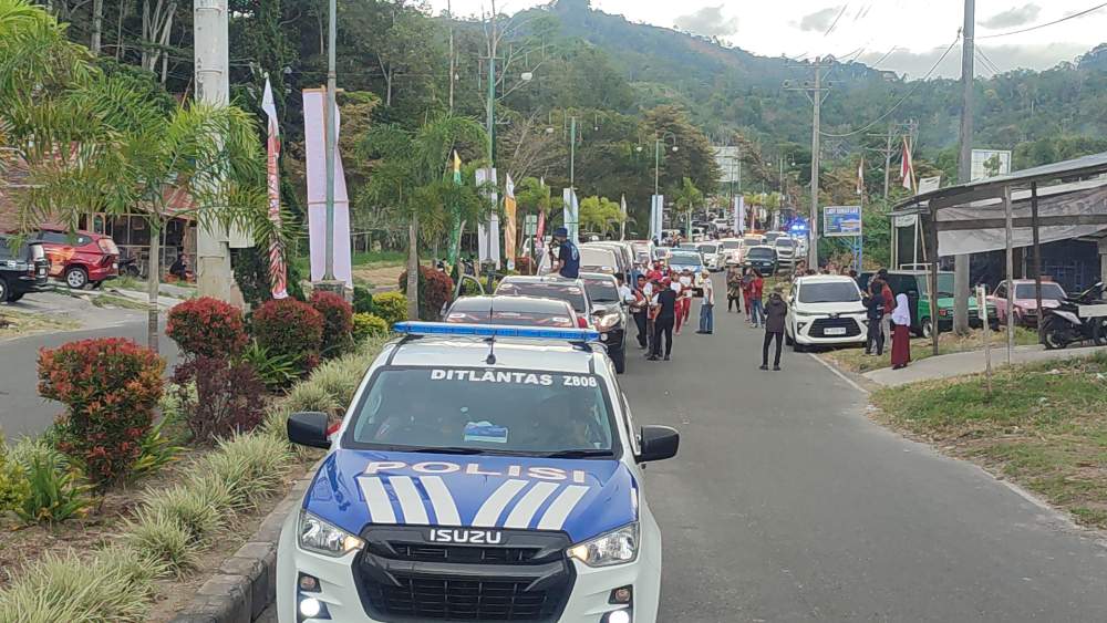 A1news.co.id|Takengon– Satuan Lalu Lintas Polres bersama Dinas Perhubungan dan Rombongan Forkopimda  Kabupaten Aceh Tengah kawal Api PON Aceh Sumut XXI