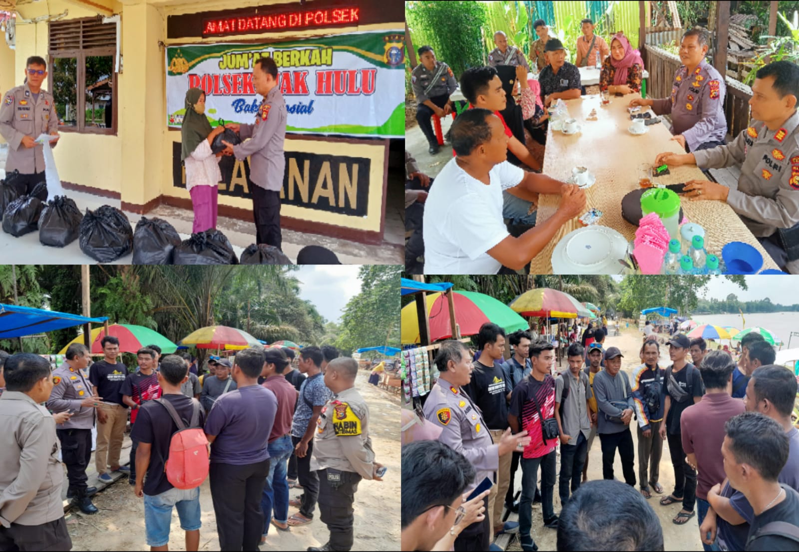 Kapolsek Siak Hulu AKP Asdisyah Mursyid SH bersama Personel Polsek Siak Hulu melaksanakan himbauan cooling system kepada masyarakat di Desa Pangkalan baru dengan Tema Agenda rutin Jumat Berkah memberikan sembako kepada masyarakat dan selanjutnya di Desa Teratak Buluh kecamatan Siak Hulu masyarakat yang tengah berkumpul santai sembari dengan menitip pesan agar bersama-sama menyukseskan Pemilihan Kepala Daerah (Pilkada) serentak tahun 2024 dengan damai.