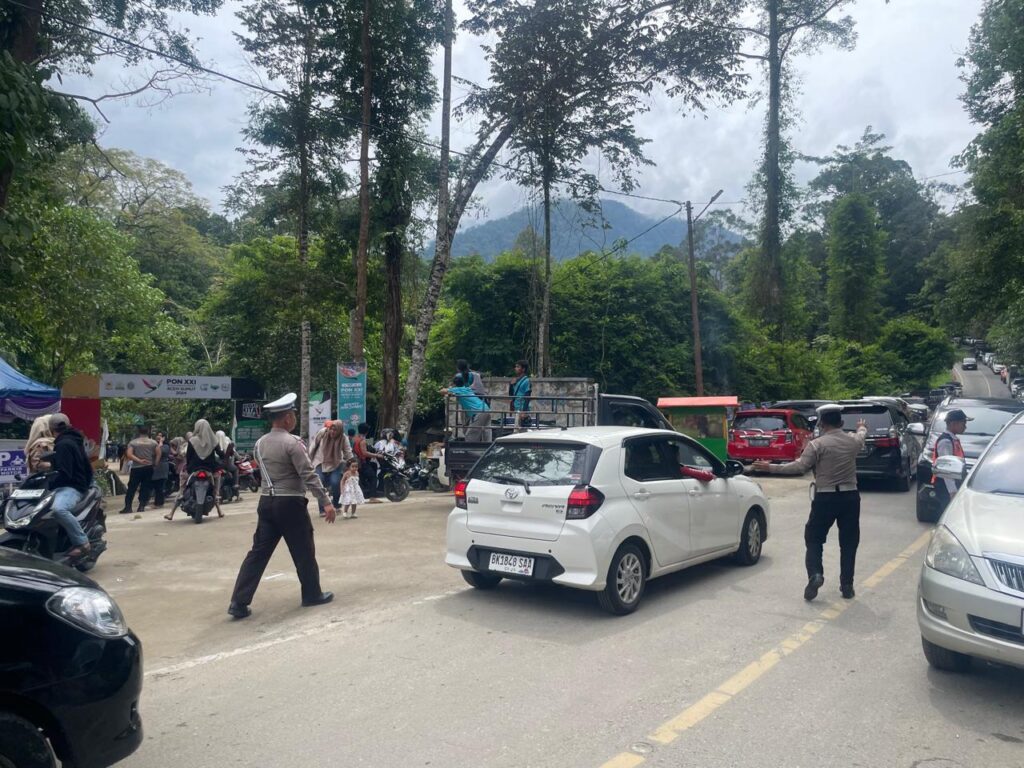 Langkah ini diambil untuk memastikan tidak terjadi penumpukan kendaraan di badan jalan utama, sehingga tetap menjaga kelancaran arus lalu lintas dan keamanan para pengunjung serta peserta acara.