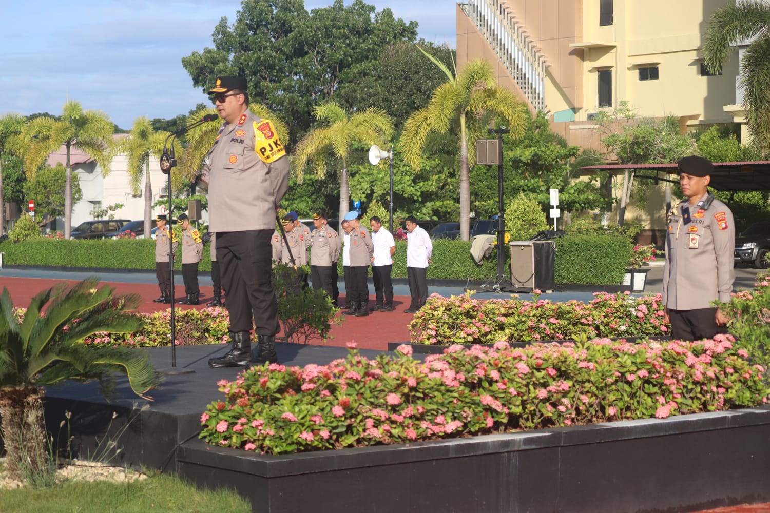 Apel pagi di Lapangan Mapolda Aceh dihadiri Wakapolda Aceh Brigjen Pol. Misbahul Munauwar, S. H, Irwasda, Para PJU, Pamen, Pama, Bintara, Tamtama dan ASN Polda Aceh.(RD)
