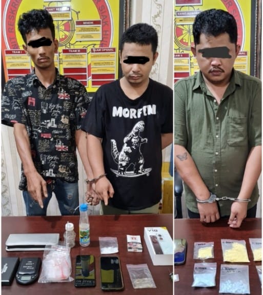 A1news.co.id|Siak Hulu– Jajaran Polsek Siak Hulu berhasil tangkap 3 pelaku yang terlibat Narkoba jenis sabu-sabu dan Pil Ekstasi, dari penangkapan ketiganya ditemukan sabu-sabu 11,38 Gram dan Pil ekstasi 6 bungkus dengan berat 208,22 Gram, Kamis (19/9/2024) sekira pukul 19.15 Wib.