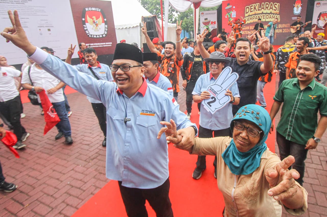 Pasangan Calon (Paslon) dengan nomor urut 2, Asri Ludin Tambunan dan Lom Lom Suwondo (ADIL) memasuki alun-alun diikuti ratusan pendukung dan relawan serta partai politik pengusul dan pendukung. Acara itu turut dihadiri Sekda Kabupaten Deliserdang Citra Effendi Capah, serta Komisioner dan Anggota KPU Deliserdang.