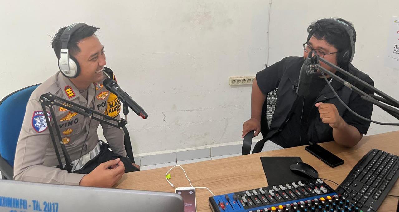 A1news.co.id|Kampar– Kapolres Kampar, AKBP Ronald Sumaja melalui Satuan Lalulintas (Satlantas) Polres Kampar AKP Vino Lestari menyambangi Radio Swara Kampar menyampaikan himbauan Pilkada Damai, Selasa (1/10/2024). Kegiatan ini dalam rangka Pilkada serentak di Kabupaten Kampar.