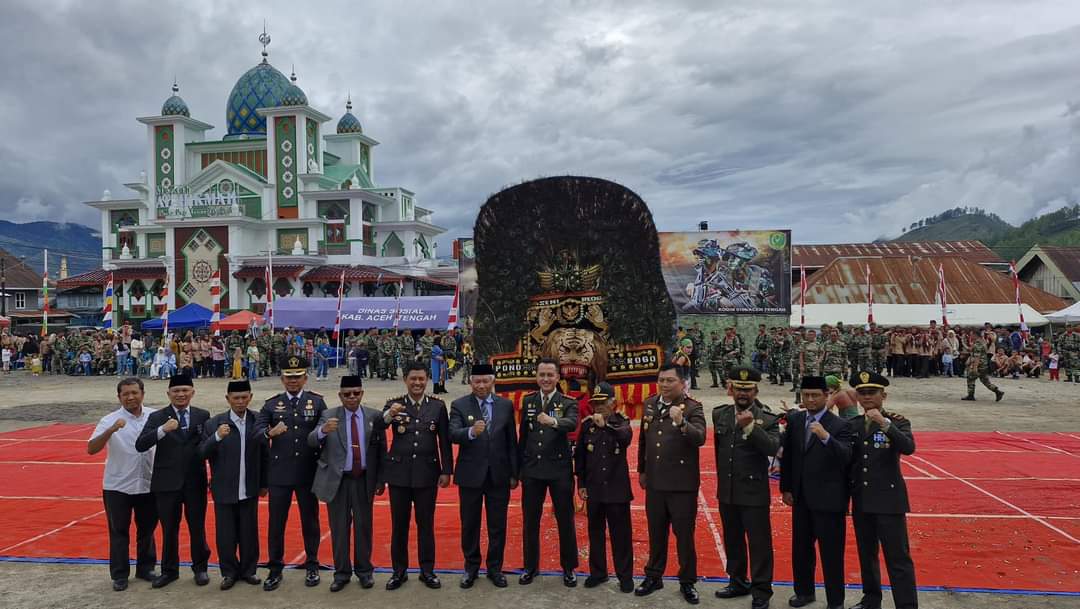 Berlangsung di Lapangan Sanggamara Kab. Aceh Tengah, Letkol Inf Kurniawan Agung Sancoyo SE.M.,Han Bertindak Sebagai Inspektur Upacara.