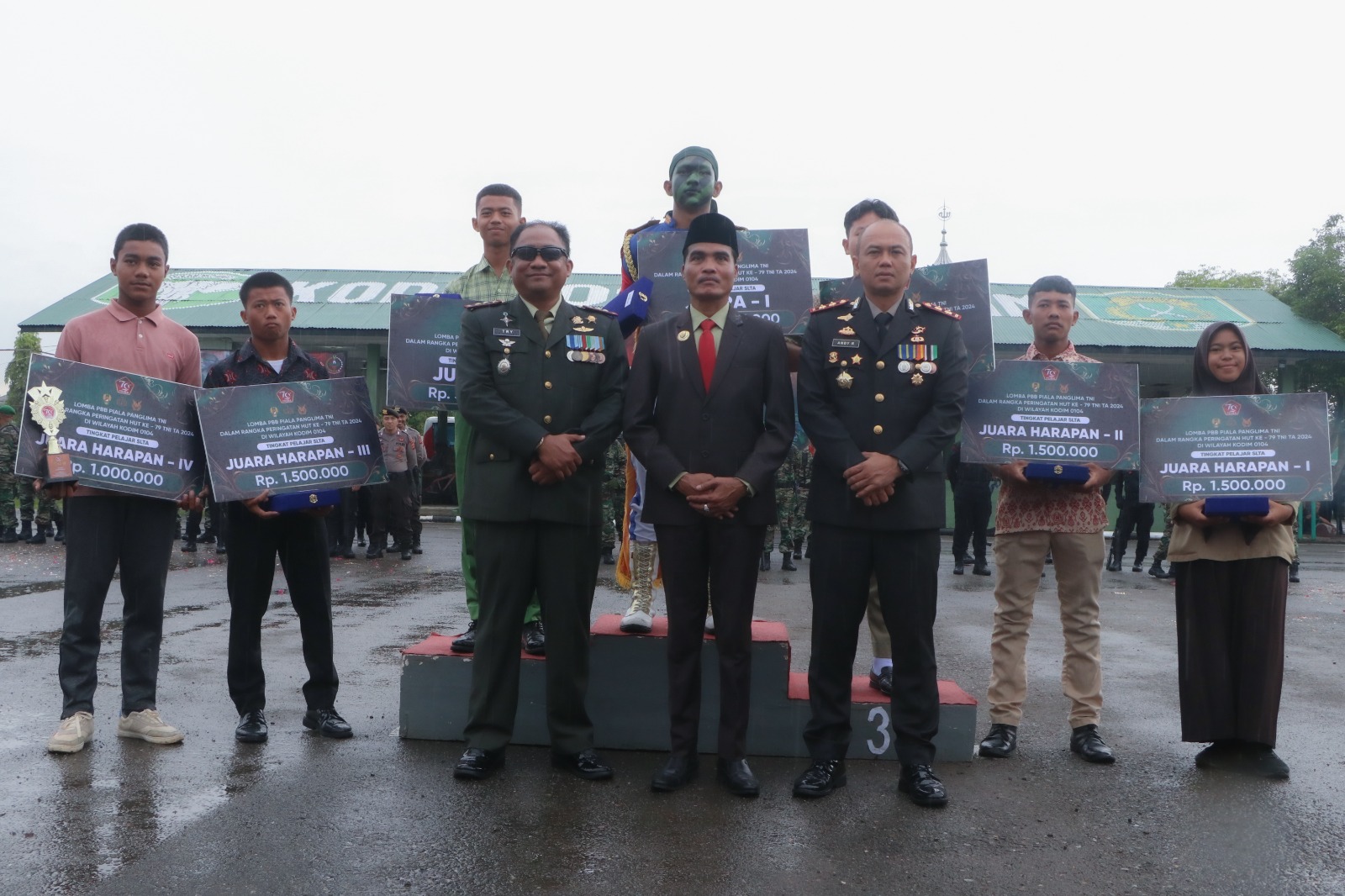 Kegiatan kemudian dilanjutkan dengan sesi foto bersama unsur Forkopimda Kota Langsa dan Kabupaten Aceh Timur. Di sela-sela itu, para pemenang lomba PBB yang diadakan sebelumnya menerima penghargaan dari Dandim. Semua ini adalah bagian dari rangkaian acara yang penuh dengan semangat kebersamaan dan gotong royong.