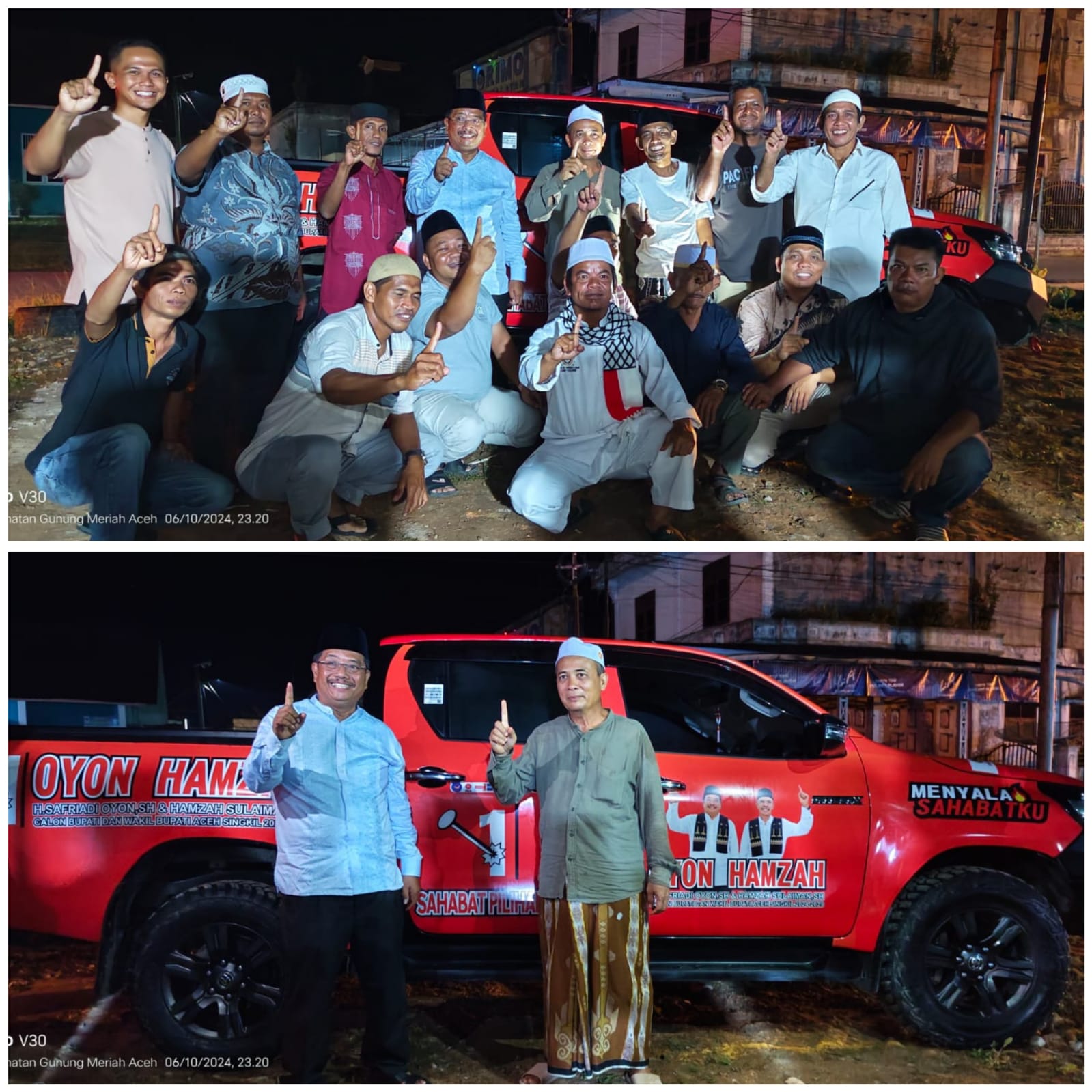 Ada 6 unit mobil yang disumbangkan untuk kebutuhan operasional Kampanye Oyon – Hamzah . Agar lebih semarak dan “Menyala” mobil tersebut telah diberikan stiker gambar calon Bupati dan wakil Bupati dengan nomor urut 1 H. Safriadi Manik SH – Hamzah Sulaiman SH.
