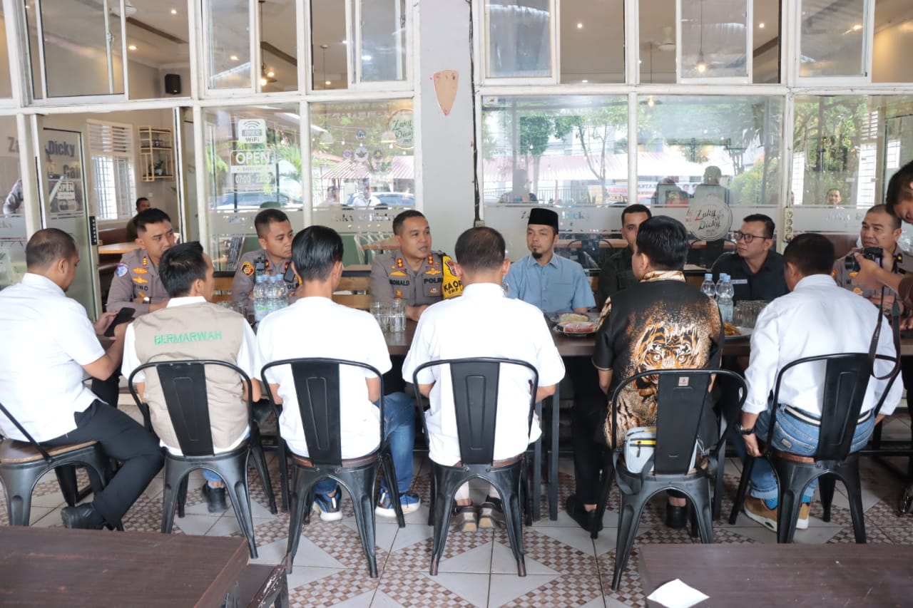 A1news.co.id|Kampar– Kapolres Kampar AKBP Ronald Sumaja memimpin kegiatan Coffee Morning Cooling Sistim dan silaturahmi bersama Komisioner KPU, Bawaslu Kabupaten Kampar dan Tim Pemenangan Paslon Bupati dan Wakil Bupati Kampar, di Cafe Zaki&Dicky, Bangkinang Kota, Kabupaten Kampar, Senin (7/10/2024).