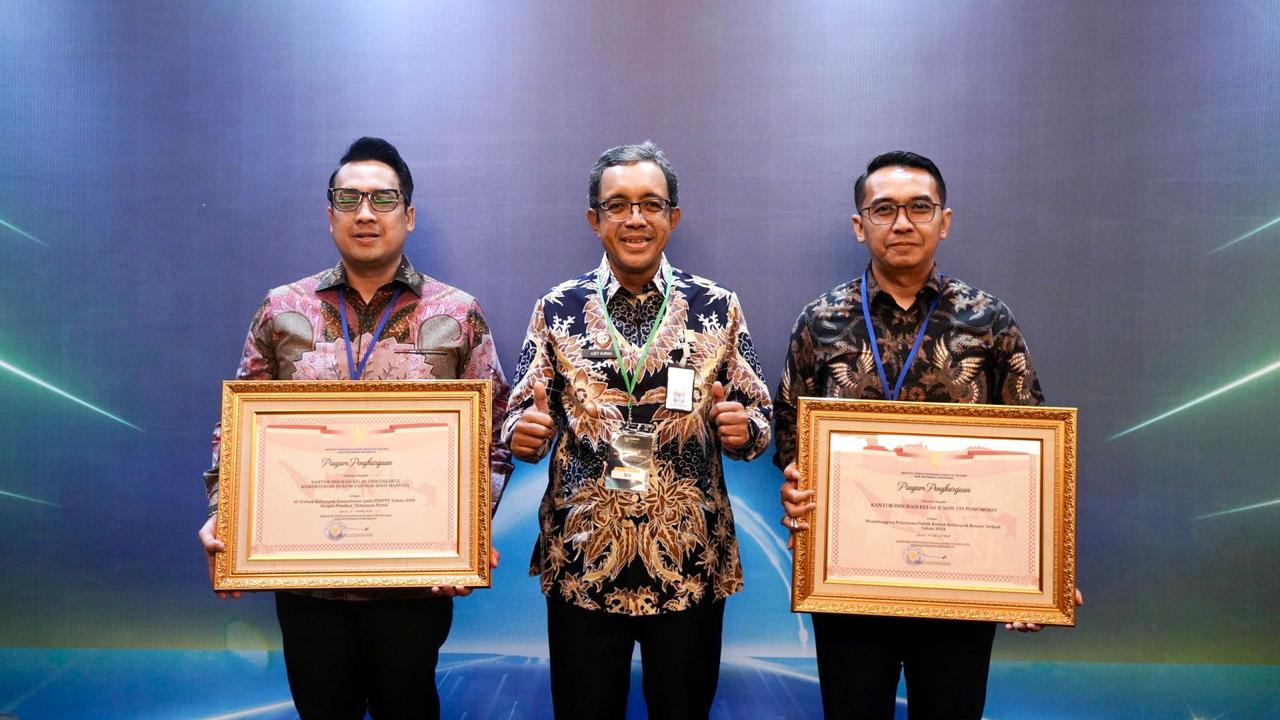 Dua penghargaan tersebut masing-masing ditujukan kepada Kantor Imigrasi (Kanim) Kelas I Yogyakarta dan Kanim Kelas II Non TPI Ponorogo.