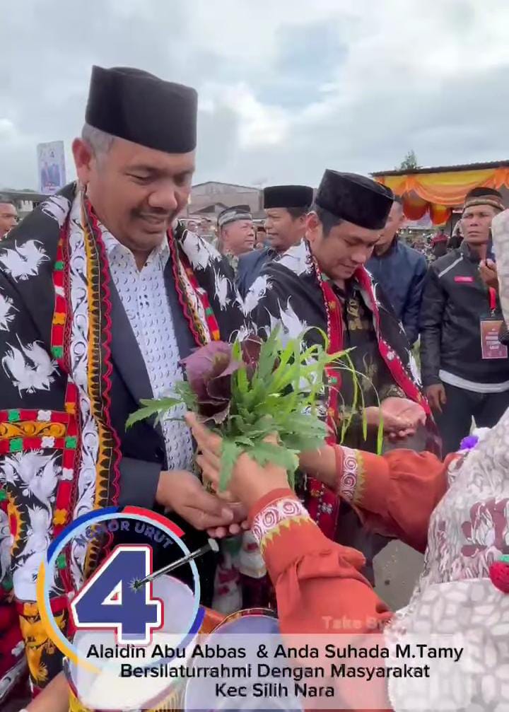 Alaidin Abu Abas-Anda Suhada sebagai calon Bupati Aceh Tengah untuk priode 2025-2030, disambut dengan acara pesekuk oleh sesepuh dan orang tua yang berada di sana.