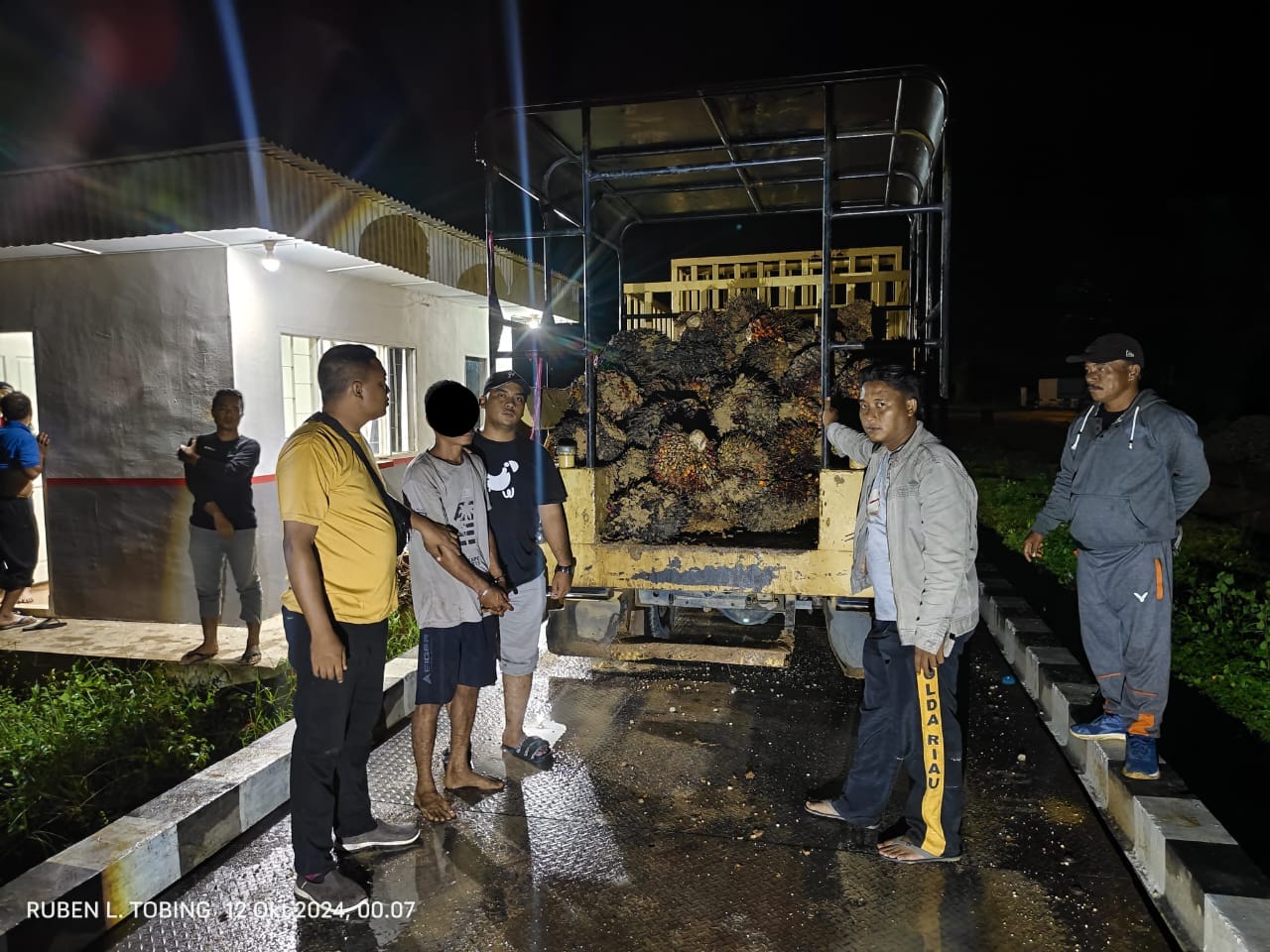 Pria tersebut mengaku bernama R (36) dan mengakui bahwa dirinya telah melakukan pencurian buah kelapa sawit bersama seorang rekannya yang bernama I, yang berhasil melarikan diri saat penangkapan.