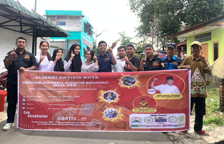 A1news.co.id|Medan – Aliasni Aktivis Kota (AKTA) berkaloborasi dengan Rico – Zaki Gelar Cek Kesehatan dan pembagian Minyak Gratis kepada warga Medan Johor