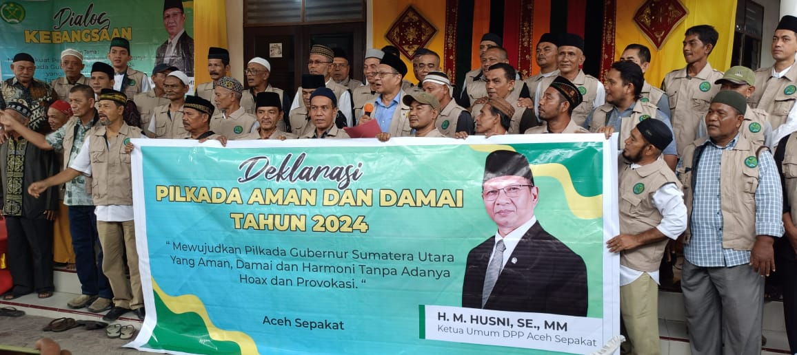 Ketua Umum DPP Aceh Sepakat, H. M. Husni, SE., MM., pada sambutannya sebelum memimpin kader Aceh Sepakat melakukan deklarasi menekankan bahwa Aceh Sepakat merupakan bagian warga Kota Medan pengisi pembangunan yang harus memberi kontribusi di dalam Pilkada damai yang akan dilaksanakan pada 26 November 2024 mendatang.