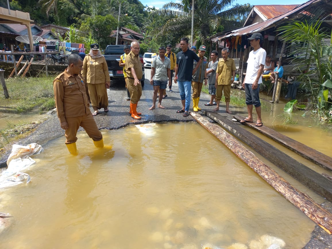 Gotong Royong Warga Dusun Rantau Panjang, Desa Sijudo Perbaiki Jalan Rusak Pascabanjir