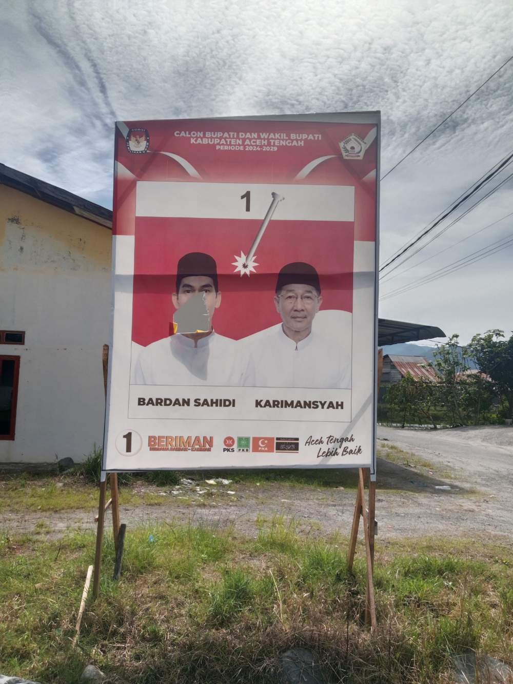Ada beberapa titik lokasi dimana baliho pasangan dengan akronim Beriman (Bersama Bardan-Kariman) yang dirusak OTK, minsalnya di Kala Lengkio, Kecamatan Kebayakan.