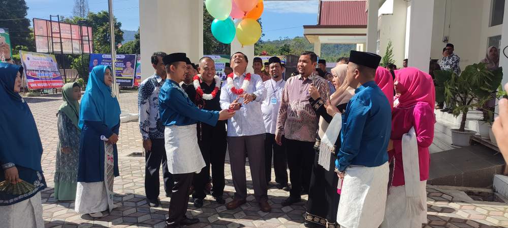 Acara selanjutnya Pengalungan Bunga kepada Asisten III Harun Manzola dan Plt Cabdin Aceh Tengah Isma Hendra.