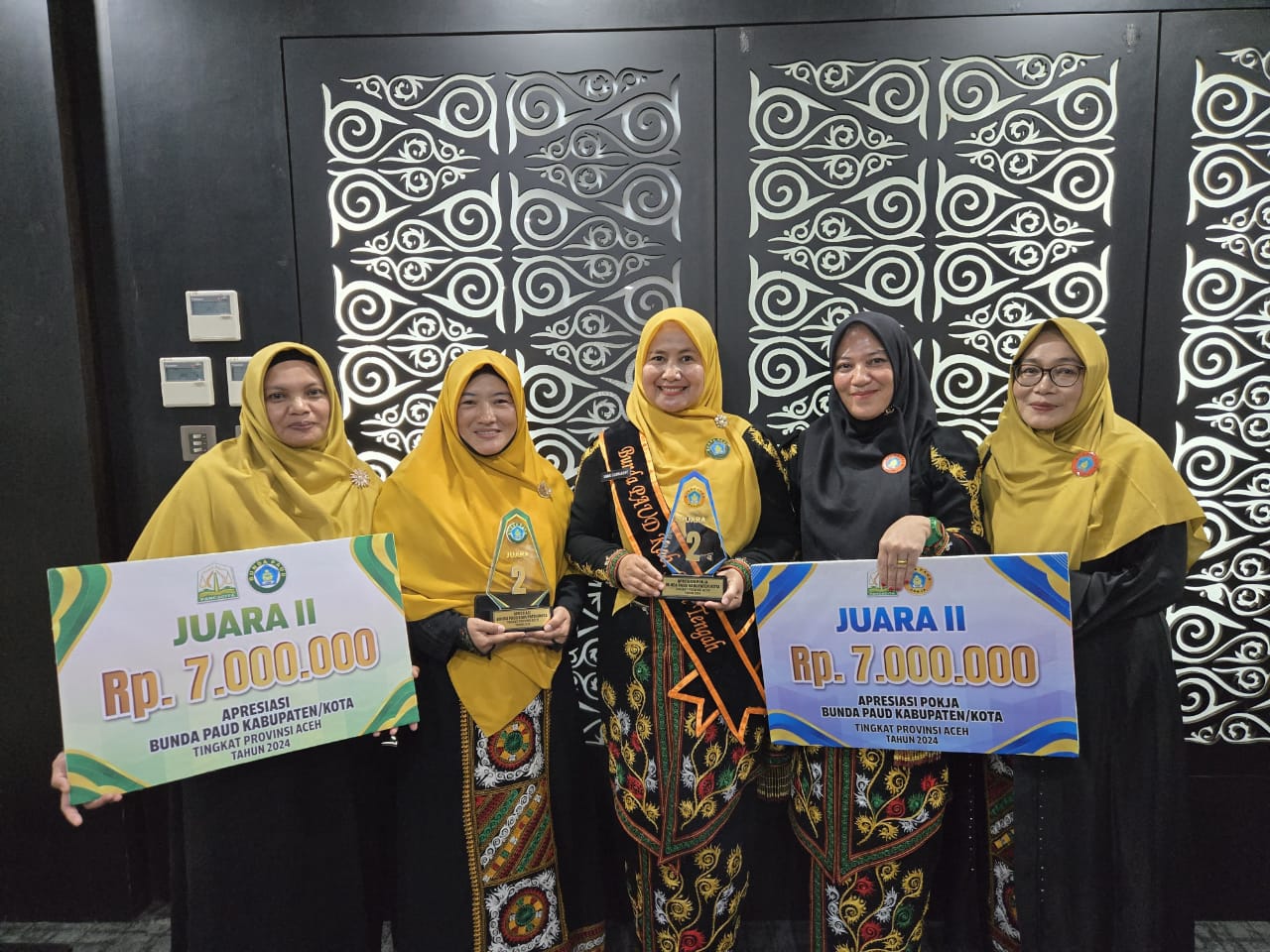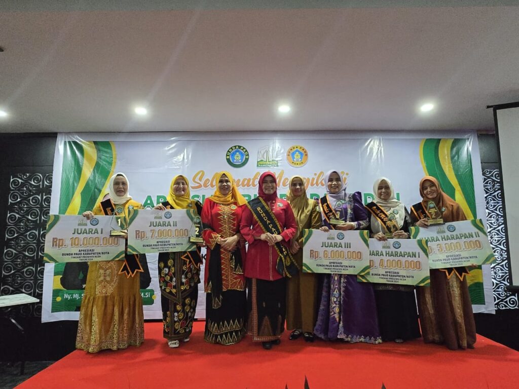 A1news.co.id|Takengon– Bunda PAUD Ummu Hanik Shubandy sekaligus Ibu Pj Bupati Aceh Tengah meraih juara 2 Kategori Apresiasi Bunda PAUD dan Ketua Pokja Bunda PAUD Elenda Rossy Fitri sekaligus Ibu Pj Sekda Aceh Tengah meraih juara 2 Kategori Apresiasi Pokja Bunda PAUD