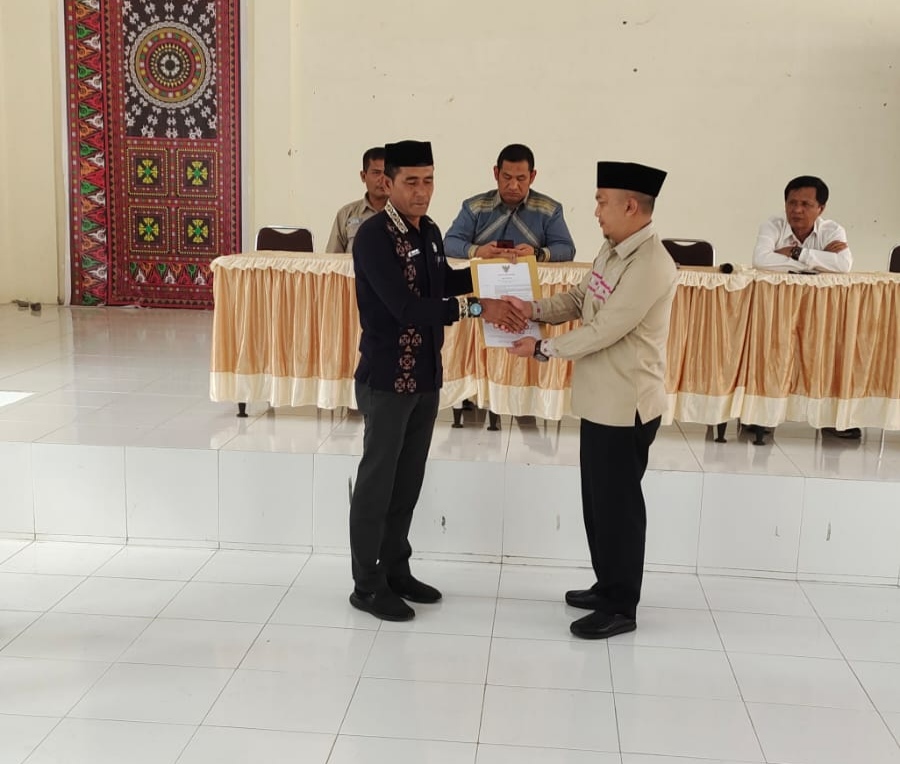 Selanjutnya penyerahan SK Pengangkatan oleh Pj Sekda Aceh Tengah Erwin kepada Kabid PAUD dan PNF Ruhdi S.Pd menjadi Plt Kepala Dinas Pendidikan dan Kebudayaan Aceh Tengah.