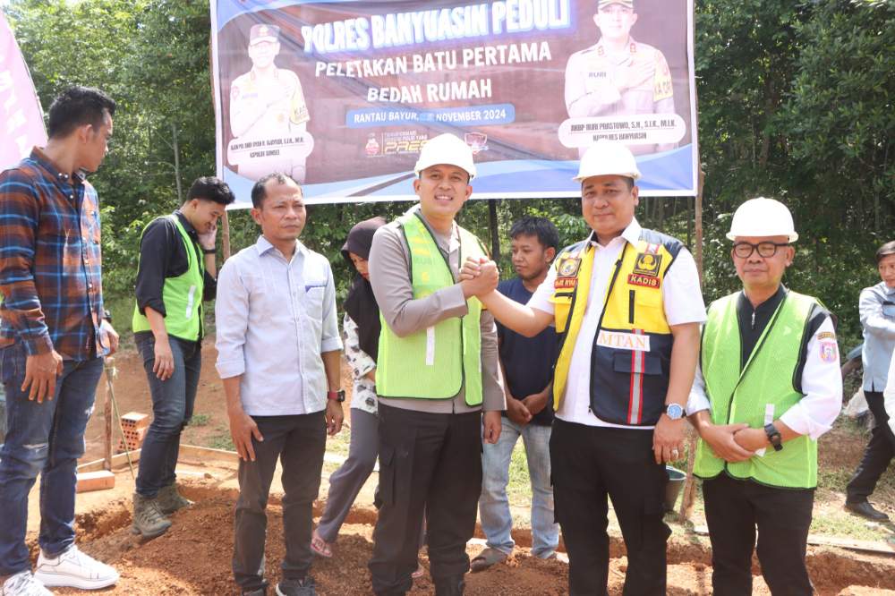 A1news.co.id|Banyuasin– Sebagai bagian dari implementasi program prioritas Kapolda Sumsel Irjen Pol Andi Rian R Djajadi SIK MH, Kepolisian Resort Banyuasin yang dipimpin oleh AKBP Ruri Prastowo SH SIK MIK bersama sejumlah instansi terkait, melaksanakan peletakan batu pertama untuk program bedah rumah di Desa Rantau Harapan, Kecamatan Rantau Bayur.