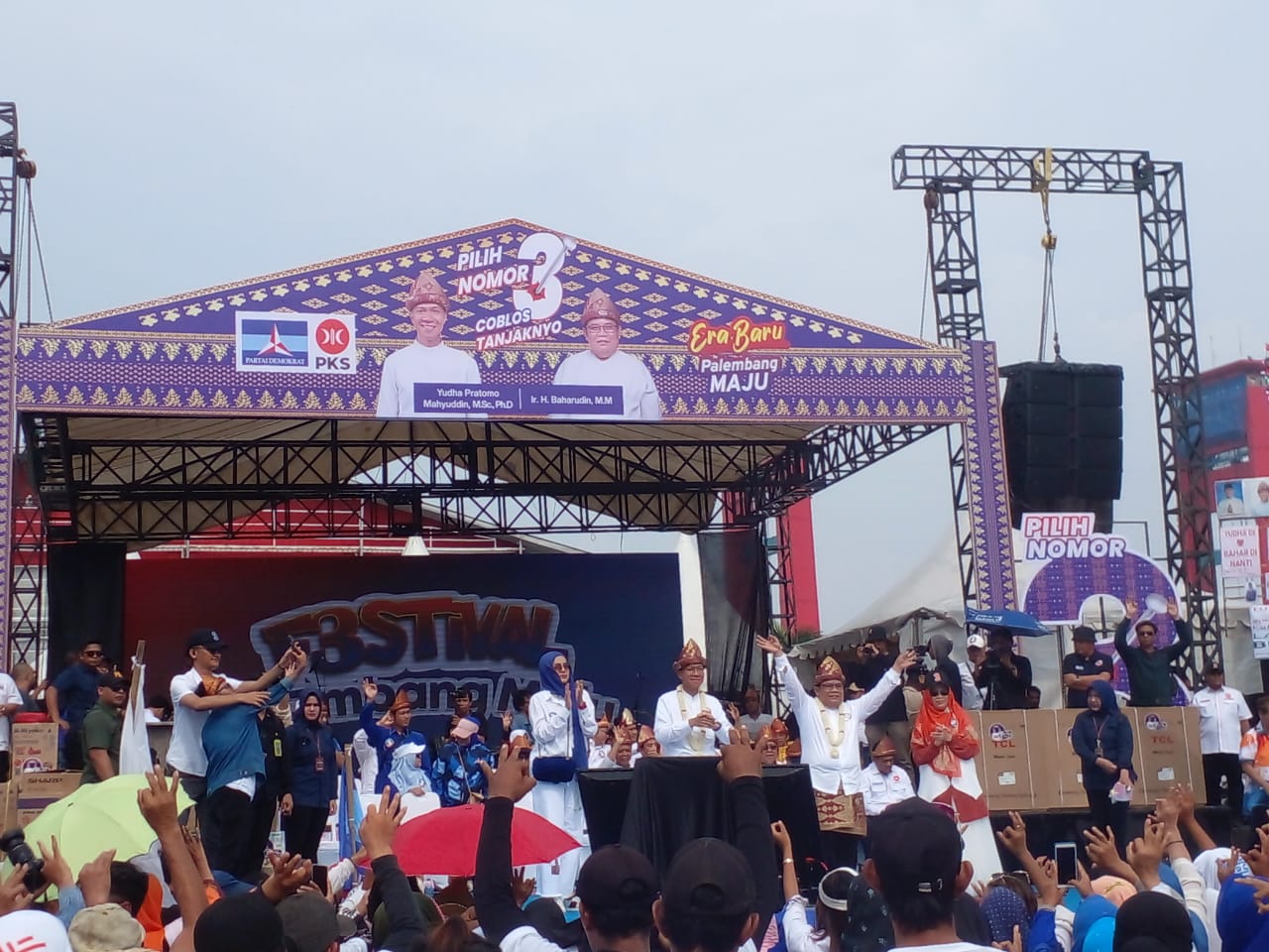 “Sementara itu, diketahui Festival Palembang Maju digelar dalam rangka kampanye akbar atau rapat umum terbuka Yudha dan Baharuddin.