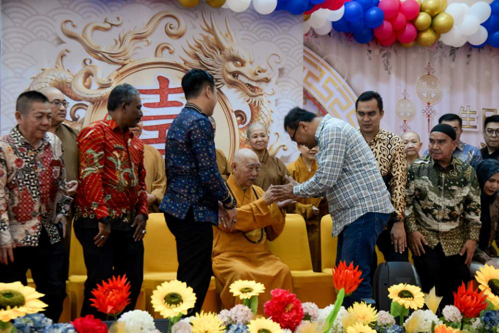 A1news.co.id|Deli Serdang – Tokoh masyarakat Deli Serdang dr. Asri Ludin Tambunan diundang untuk menghadiri perayaan ulang tahun salah satu tokoh ummat Buddha yakni Yang Mulia Bhiksu Dharma Virya Mahasthavira (Suhu) yang ke 85 tahun di Vihara Buddha Loka Green Hill City Sibolangit.