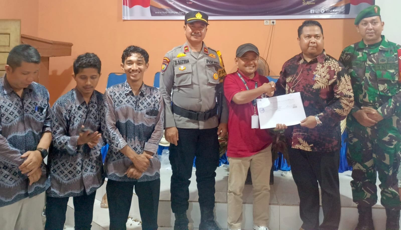 ” Penutupan Rapat Rekapitulasi Hasil Penghitungan Perolehan Suara dihadiri oleh Camat Kampa yang diwakili oleh Kasi PMD Ibu Dra. Roziah,yang selanjutnya turut serta di hadiri Danramil 07 Kampa Kapten Arh Diding sukardi diwakilkan kepada Serda Eem Prince,Kapolsek Tambang AKP Asril Syahputra,SH Yang diwakili Oleh Kanit Binmas Polsek Tambang IPDA Dodi satria