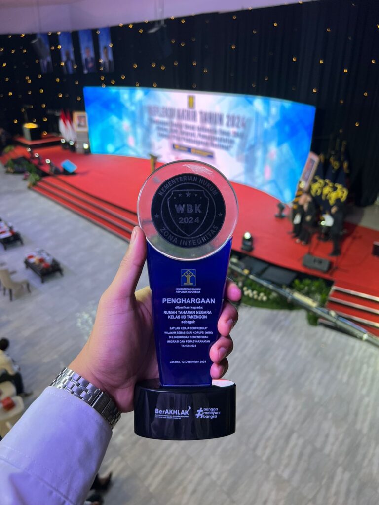 Penghargaan diserahkan langsung oleh Menteri Imigrasi dan Pemasyarakatan RI Agus Andrianto yang didampingi oleh Wakil Menteri Imigrasi dan Pemasyarakatan RI Silmy Karim Dalam kegiatan refleksi akhir tahun 2024.