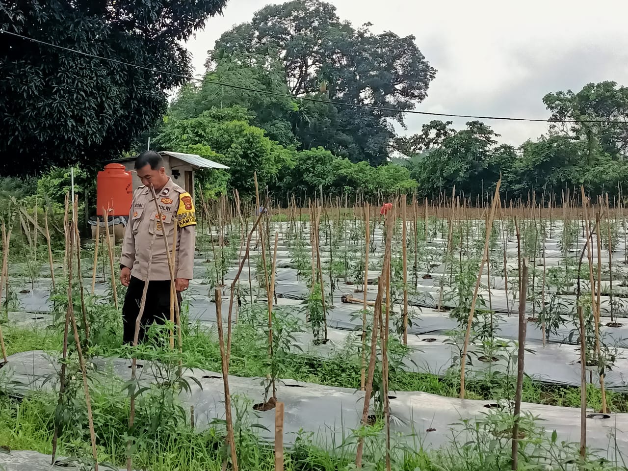 A1news.co.id|Kuansing- Dalam rangka mendukung Program ASTA CITA Presiden Republik Indonesia untuk memperkuat ketahanan pangan nasional, Polsek Kuantan Tengah menggelar kegiatan pengecekan tanaman cabe merah yang dilakukan oleh Kelompok Tani Maju Bersama di Desa Seb. Taluk Hilir, Kecamatan Kuantan Tengah, pada Selasa, (24/12/2024).
