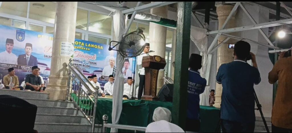 “Atas nama Pemerintah Kota Langsa, saya menyampaikan terima kasih kepada Tgk. H. Fakhruddin Lahmuddin, S.Ag, M.Pd, yang telah berkenan untuk hadir di Kota Langsa memberikan tausiah pada acara ini. Semoga tausiah yang disampaikan nanti dapat menjadi penyegar iman dan pengingat bagi kita semua”, Aamin Ya Rabbal alamin, tutup Syaridin.