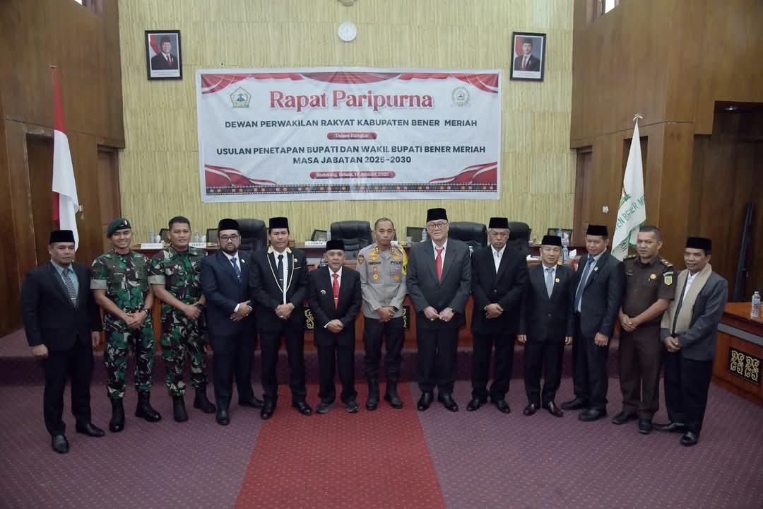 “Kita ketahui bersama pada hari ini selasa tanggal 14 januari 2025 kita telah sampai pada acara Rapat Paripurna Penetapan Bupati dan Wakil Bupati Bener Meriah Masa Jabatan 2025 2030, dan hari ini adalah awal dari sebuah perjalanan calon pemimpin daerah yang akan berjuang demi memajukan kesejahteraan rakyat Kabupaten Bener Meriah.