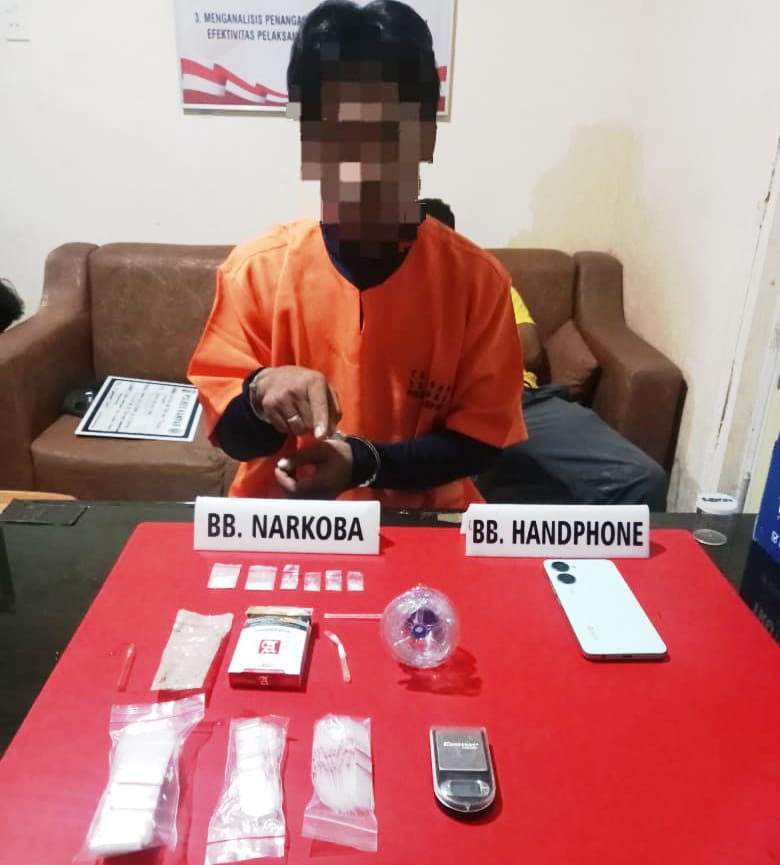 Barang bukti yang diamankan dari tangan tersangka berupa: 6 (Enam) Paket diduga Narkotika jenis shabu yang dibungkus dengan Plastik bening bruto 2.28 gram, 1 (satu) Buah Kotak Rokok SAMPOERNA warna putih, 1 (satu) Buah pelatik bening,