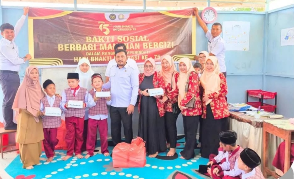 Kepala Kantor imigrasi Takengon Hamdani menyampaikan kegiatan ini dalam rangkaian Hari Bhakti imigrasi Ke 75 memberi Makanan Bergizi gratis(MBG) kepada siswa dan siswi Sekolah Dasar Islam Terpadu(IT) Al Hikmah Takengon.