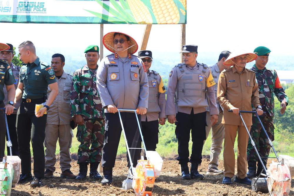 Penanaman jagung tersebut juga dilaksanakan secara serentak di seluruh Indonesia dan terhubung secara virtual dengan Kapolri Listyo Sigit Prabowo—yang me-launching program ini dari Subang, Jawa Barat.