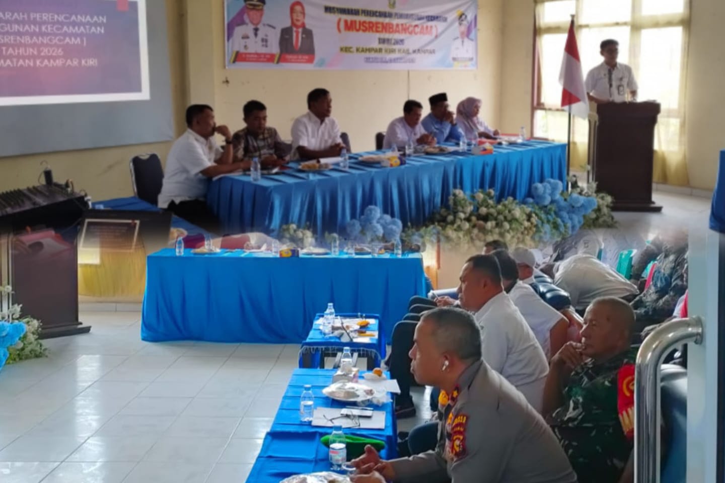 A1news.co.id|Kampar – Pj Bupati Kampar Hambali, SE, MBA, MH yang diwakili Kadis Ketahanan Pangan Muhammad secara resmi membuka dan memimpin Musyawarah Perencanaan Pembangunan Kecamatan (Musrenbangcam) untuk penyusunan Rencana Kerja Pemerintah Daerah (RKPD) Kabupaten Kampar tahun 2026. Kegiatan ini berlangsung di Aula Kantor Camat Kampar Kiri, Rabu (22/01/2025).