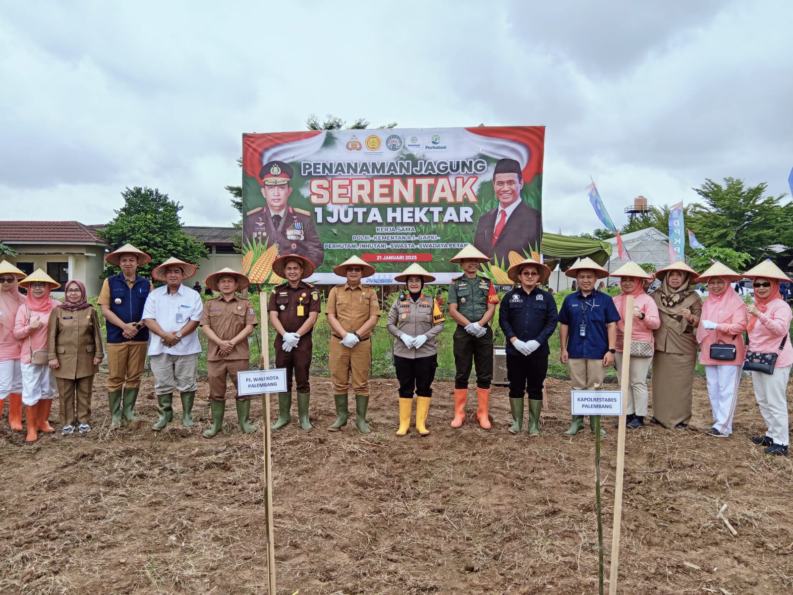 A1news.co.id|Palembang – Kegiatan penanaman jagung serentak, Kota Palembang turut melakukan penanaman jagung seluas 4 hektare demi wujudkan program swasembada pangan 2025. Kegiatan ini bekerja sama dengan polrestabes dan pemerintah Kota Palembang.