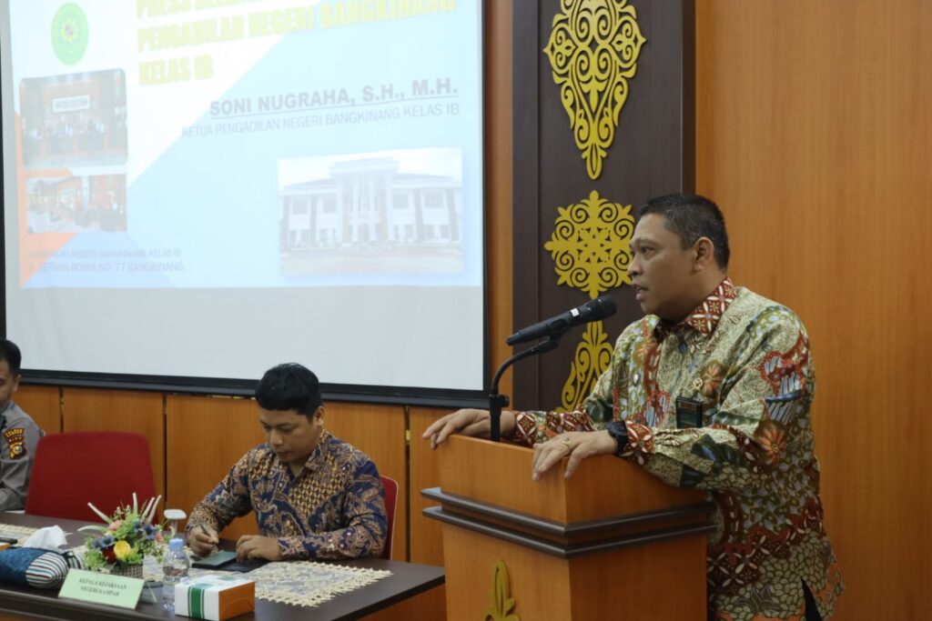 Ketua pengadilan negeri (PN) Bangkinang Soni Nugraha, SH.MH menyampaikan Beberapa prestasi dan kinerja PN selama di Tahun 2024 yang sesuai dan sejalan dengan visi misi nya dan ia terlihat tersenyum kepada para Tamu undangan dan menyapa nya saat acara press release berlangsung ,pada pagi Jum’at sekira pkl 09.30 wib (24/1/25)