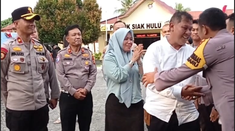 Dengan mata yang berkaca-kaca para hadirin meneteskan air mata melepas kepergian AKP Asdisyah Mursyid meninggalkan Mako Polsek Siak Hulu .