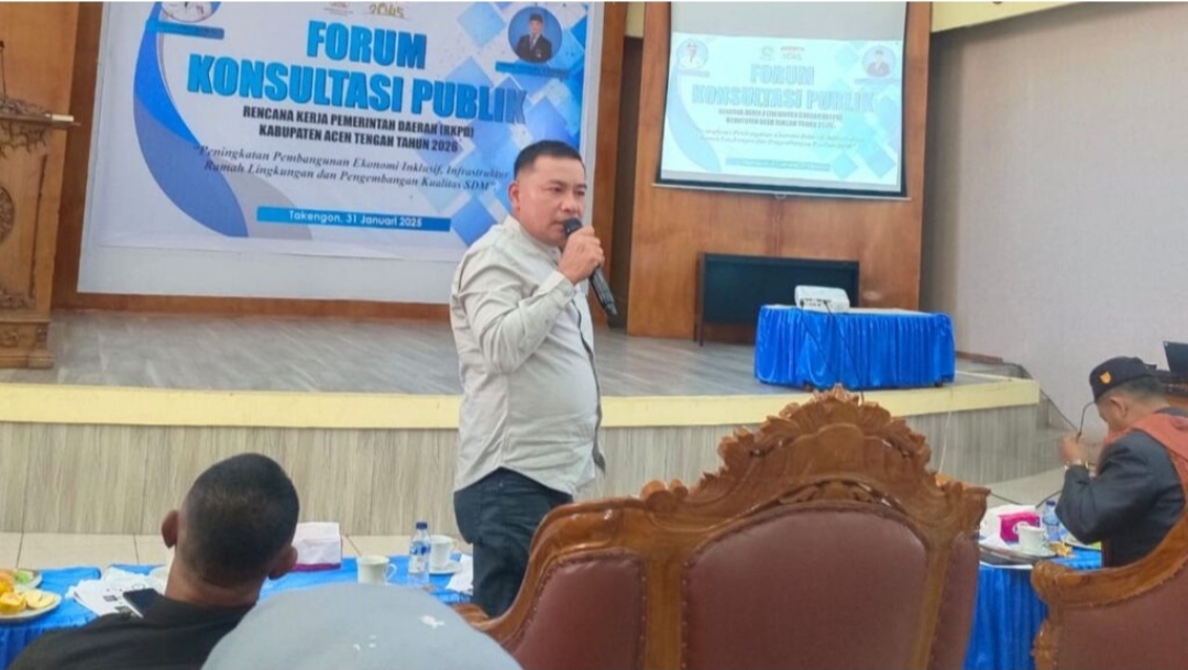 A1news.co.id|Takengon – Anggota DPRK Aceh Tengah sekaligus Sekretaris Komisi D dari Fraksi PKS menghadiri acara Forum Konsultasi Publik Rancangan Awal (Ranwal) Rencana Kerja Pemerintah Daerah (RKPD) Kabupaten Aceh Tengah Tahun 2026.