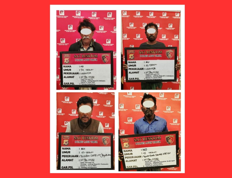 Kapolres Aceh Timur AKBP Nova Suryandaru, melalui Kasat Reskrim Iptu Adi Wahyu Nurhidayat, menyebutkan keempat WNA tersebut merupakan warga Myanmar diantaranya; AB (51), MU (48), MH (46) dan NO (45).