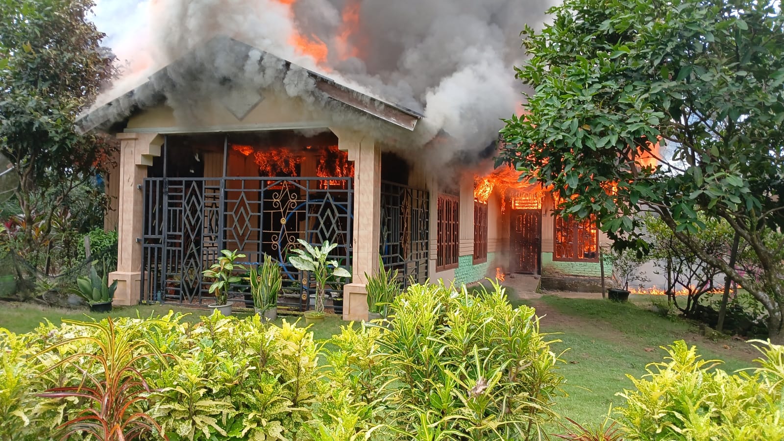 Nama pemilik rumah Ilham Silian umur 52 tahun, kerugian sekitar 200 jutaan di antaranya sepeda motor 2 unit dan beberapa perkakas lainya, saksi pertama orang tua kandung dan adik kandung.