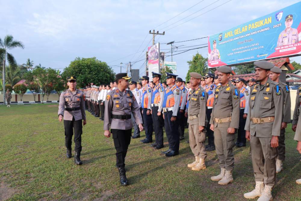 A1news.co.id|Kampar – Polres Kampar menyelenggarakan Apel Gelar Pasukan Operasi Keselamatan Lancang Kuning 2025 di Lapangan Upacara Mapolres Kampar, Senin (10/02/2025) pagi.