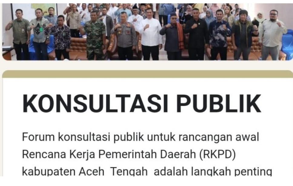 A1news.co.id|Takengon – Agenda perencanaan pembangunan Aceh Tengah mulai memasuki tahapan konsultasi publik terhadap Rancangan Awal Rencana Kerja Pemerintah Daerah (Ranwal RKPD).