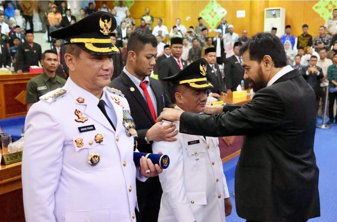 Gubernur Aceh Muzakkir Manaf resmi melantik Irjenpol (purn) Drs Armia Fahmi sebagai Bupati dan Ismail.SEi sebagai Wakil Bupati Aceh Tamiang periode 2025-2030.