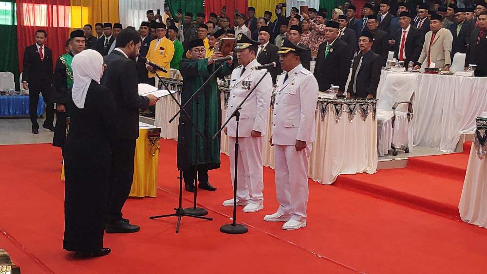 A1news.co.id|Takengon – Gubernur Aceh Muzakir Manaf secara resmi melantik Haili Yoga dan Muchsin Hasan sebagai Bupati dan Wakil Bupati Aceh Tengah periode 2025-2030 pada rapat paripurna DPRK Aceh Tengah tentang pengambilan sumpah jabatan, pelantikan dan serah terima jabatan Bupati dan Wakil Bupati Aceh Tengah, berlangsung di Gedung Olah Seni Takengon, Selasa (18/2/2025).
